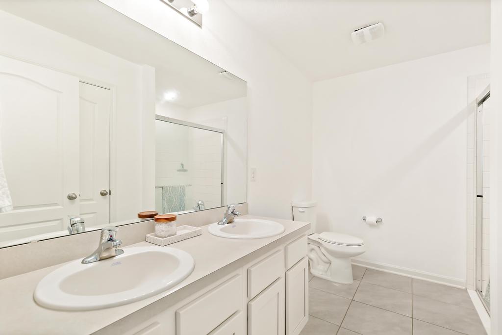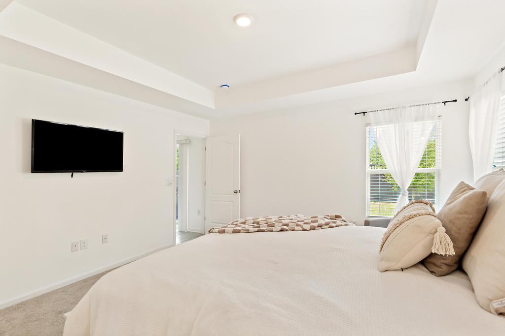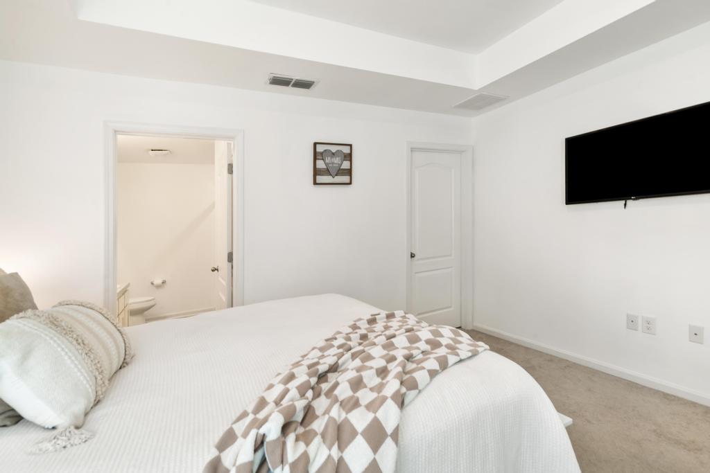 The primary suite serves as a private retreat, complete with a spacious walk-in closet and an en-suite bath featuring double vanities and a walk-in shower. Two additional bedrooms offer flexibility for guests, a home office, or growing needs.