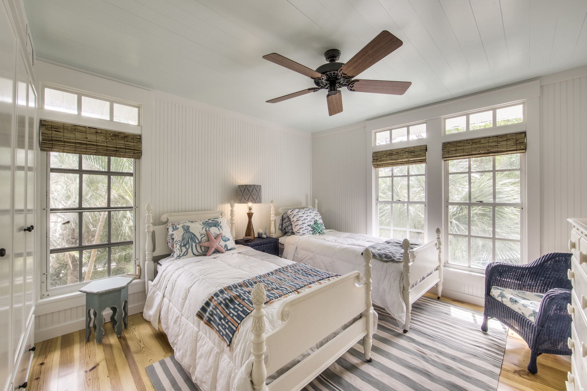 Our team led the project from initial site selection through final furniture installation. Key features include reclaimed heart pine floors, hand-hewn beams, and a wraparound porch that offers 270-degree views of the Intracoastal Waterway.